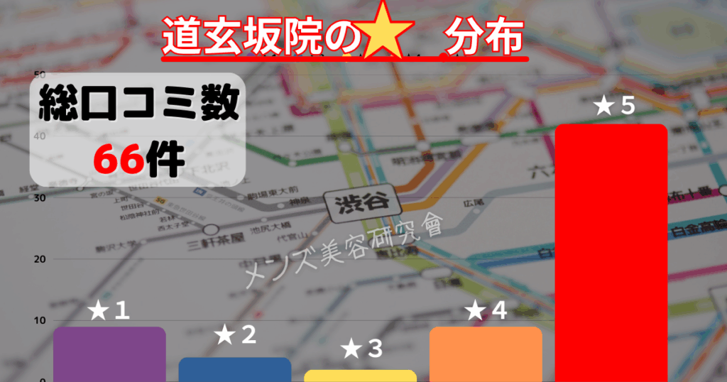 道玄坂院のGoogleの口コミは全体で66件、総合評価は4.1でした。(2025年9月15日現在)