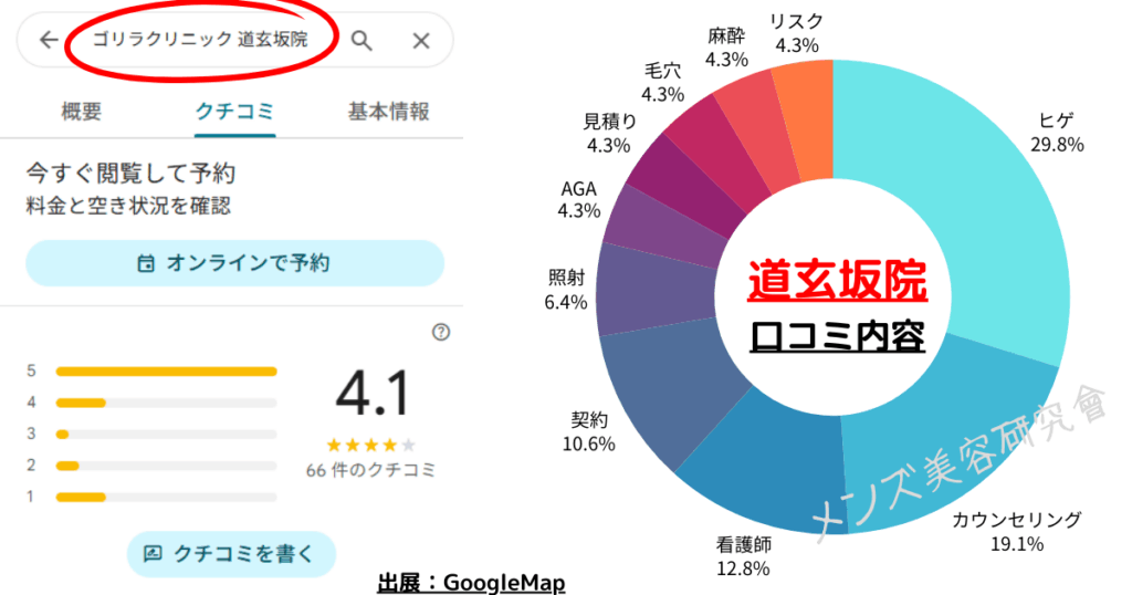 実際のGoogleの口コミを参考に、今もっとも話題に登る男性専用の医療脱毛クリニックであるゴリラクリニック道玄坂院を選ぶ参考になれば幸いです。