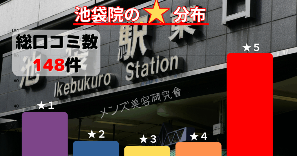 池袋院のGoogleの口コミは全体で148件、総合評価は3.6でした。(2025年9月20日現在)