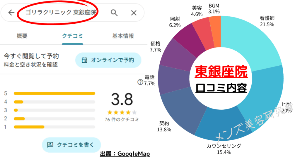 (実際のGoogle口コミを見るなら、Googleマップで「ゴリラクリニック東銀座院」と検索すると出てきます)