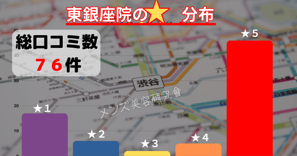 東銀座院のGoogleの口コミは全体で76件、総合評価は3.8でした。(2025年9月22日現在)