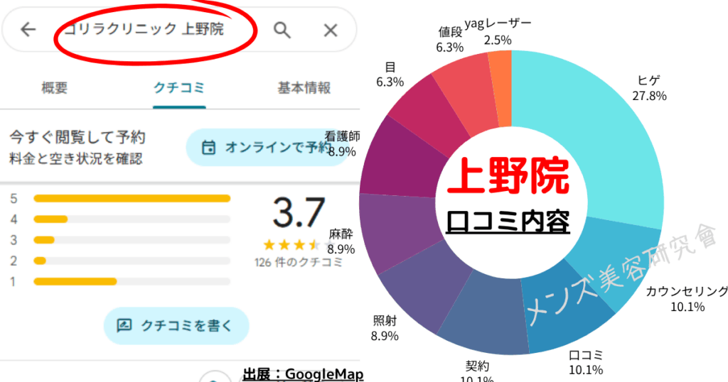 実際のGoogleの口コミを参考に、今もっとも話題に登る男性専用の医療脱毛クリニックであるゴリラクリニック上野院を選ぶ参考になれば幸いです。